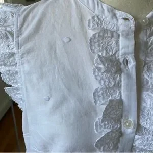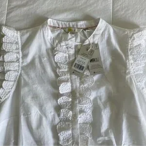 Boden Sleeveless Embroidered Shirt White Ruffle Button Down Cotton US 8 NWT