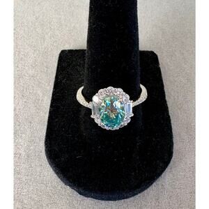 NEW 75% WHT Gold, Aqua colored Moissanite Ring, SZ 9.