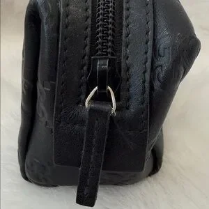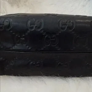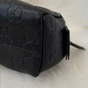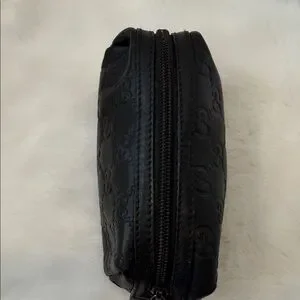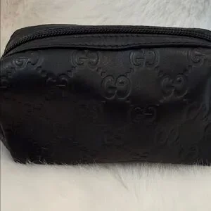 Gucci small bag black leather makeup bag iconic embossed pattern. Excellent Ideal for travel or daily use authentic!!
