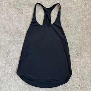 This sleek black racerback tank top is perfect for any casual outing or workout session. Enjoy comfort and style with its versatile design.