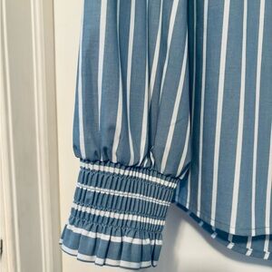 NWOT Studio Park × Amy Stran Ruffle Collar Smocked Cuff Henley Shirt X-Small