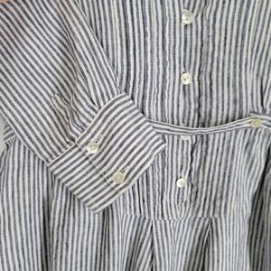 NIMES 100% Linen Shirt Dress Sz Medium Blue White Stripe Nautical Cottage