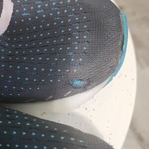 Sleek Brooks athletic shoes for women. Navy upper with teal accents. Ideal for running and workouts. one tiny rip in picture