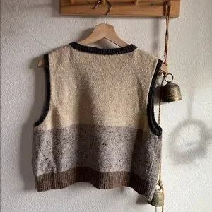 Studio Kelsey Neutral Colorblock Vest. Small. Beautifully knit vest in neutral donegal yarn. I love it, but it’s never fit my long frame. I’m 5’9” with a long torso and it hits far too short on me to comfortably wear.