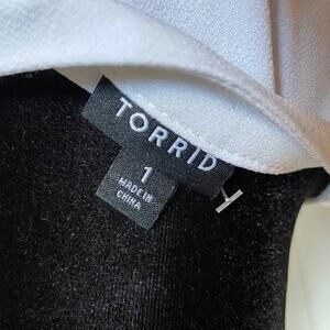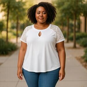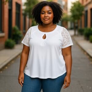 torrid Womens Top Size 1 1X White Studio Knit Lace Short Sleeve Keyhole NEW