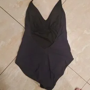 Super cute basic one piece swimsuit. Halter tie suit in black. Size Small. I love this suit because it’s sexy yet it offers good coverage.