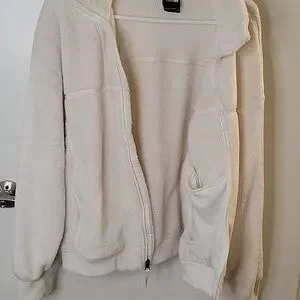 Stay cozy and stylish with this cream fleece jacket. Perfect for layering in cooler weather.