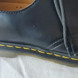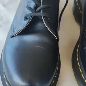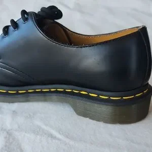 Timeless black Oxfords by Dr. Martens. Features iconic yellow stitching. Perfect for any occasion.