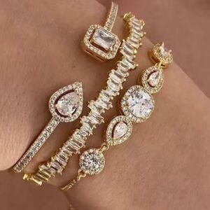 Dazzling bracelet set with gold and silver tones. Features sparkling crystals for a chic look. Perfect for any occasion.
