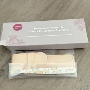 🏷️NIB Summer & Rose Cream Tweezer Set with Pouch