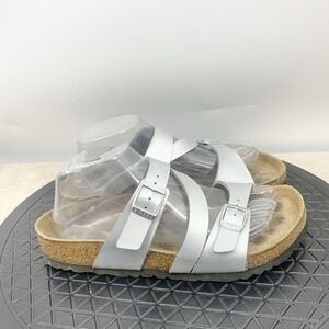 Birkenstock Salina Sandals Women 39 Size 8 8.5 Shoes Silver Gray Leather Adjust