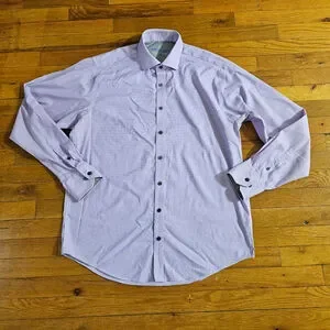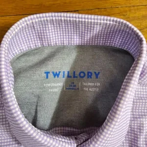 Twillory Men's Gingham Performance Dress Shirt Purple White 15