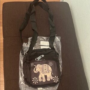 Stylish and versatile brown crossbody bag featuring an elegant elephant print. Perfect for everyday use.