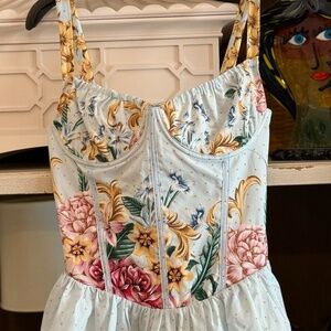 Agua Bendita Riveria Radiance Spring Blush Floral Cotton Minidress Large L dress