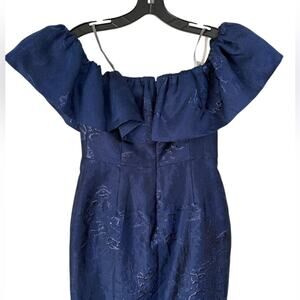 NWOT ML Monique Lhuillier Off-the-Shoulder Ruffle Trim Navy dress - Sz 6