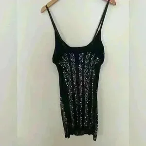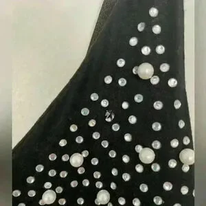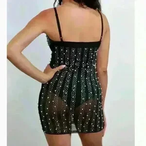 Women’s Light Sheer Top Layer Dress adorned in Rhinestones and Pearls Size Small