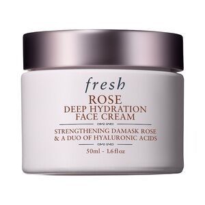 fresh rose deep hydration face cream, fresh rose face cream 50ml, fresh moisturizer brand new in box, luxury face cream, hydrating face moisturizer, hyaluronic acid face cream, damask rose moisturizer, skincare moisturizer full size