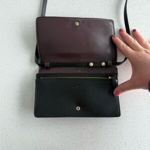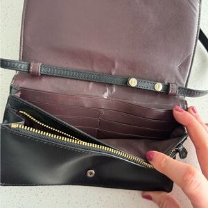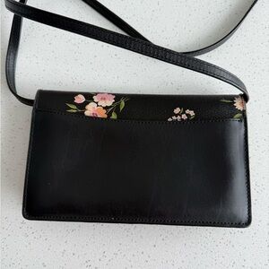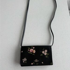 Chic Coach crossbody bag with pink floral accents on black. Ideal for versatile styling.