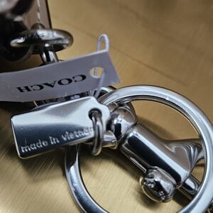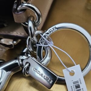 NWT COACH NORTH/SOUTH MINI TOTE BAG CHARM IN SIGNATURE CANVAS TAN & BEIGE