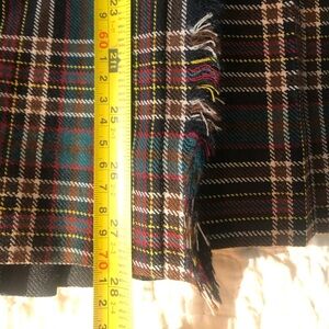 This 100% wool Surrey classics vintage kilt is beautifully pleated and is about approximately a 27 1/2 inch waist. The colours are absolutely beautiful and goes so well in the fall especially with the colour white see measurements and pictures.