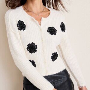 Brand New With Tags Francesca's Holly Floral Cardigan White with Black Flowers SUPER SOFT Size Large