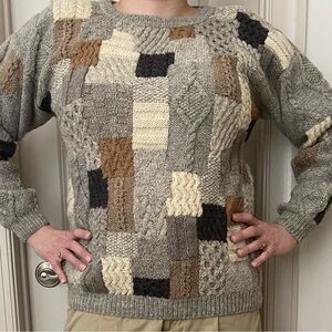 Women’s Patchwork Knit Sweater in Neutral Tones no tags fits size M/L