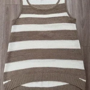 Brown and cream striped sleeveless knit top. Perfect for layering or wearing alone.