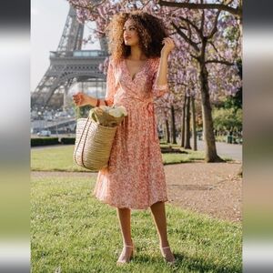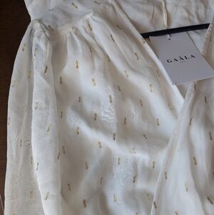 NWT Gaâla Paris Annabelle Silk Chiffon Wrap Midi Dress Ivory Gold Small/Medium