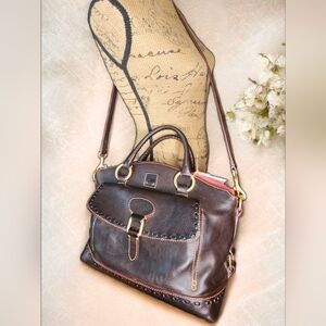 The Dooney & Bourke Florentine collection was first introduced in the spring of 2011 and has remained a popular, current collection since then. It features a stylish front buckle and detachable strap. Ideal for versatile use. Hardly used in immaculate condition. Absolutely no callouts. Please review all the pictures. This bag will come with a basic dust bag for storage.