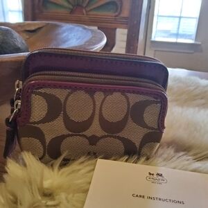 Authentic Coach Signature Zip Coin Wallet