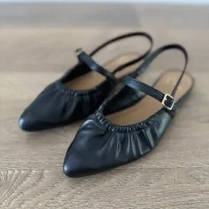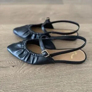 Chic black slingback flats with a ruched design. Ideal for versatile styling.