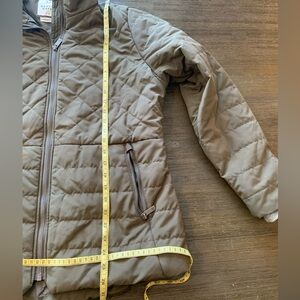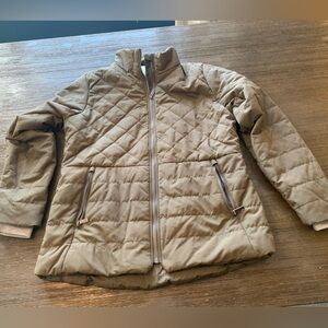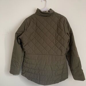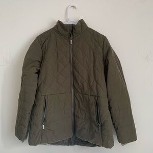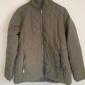 Stylish quilted jacket. Features front zipper and pockets. Perfect for cool weather.
