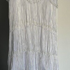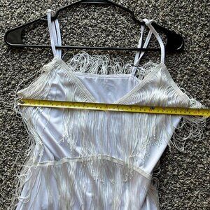 White Tassel Mini Dress Womens Medium Cowgirl Flowy Festival Western Dress