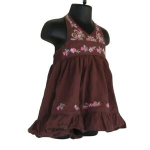 BLUEBERI BLVD Dress, 12m, Halter Embroidered Brown, Pink, Green