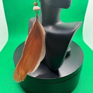 Elevate your style with these chic feather drop earrings. Featuring a blend of cream and tan hues, these earrings are perfect for any occasion.