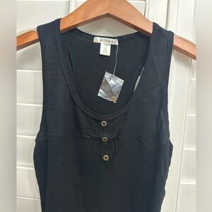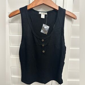 Bozzolo Waffle-Knit Henley Tank in Black – Boutique Quality, NWOT, Small