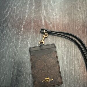 Coach Dark Brown Card Holder with Lanyard