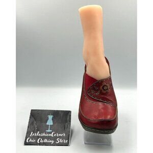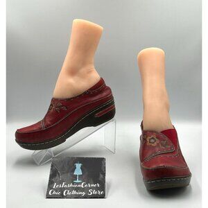 Spring Step L'artiste Women's Red Leather Burbank Slip-On Clogs Sz 7.5 (38) 3113