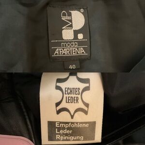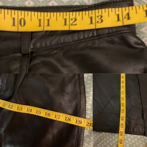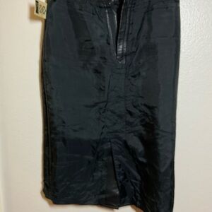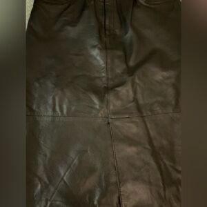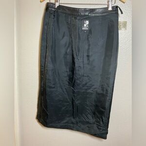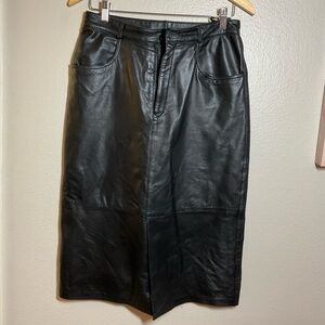 Moda A'PARTENIA vintage black leather midi skirt.