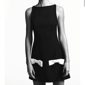 Zara Contrast Bow Mini Elegant Black Dress with White Accents Small S Nwt