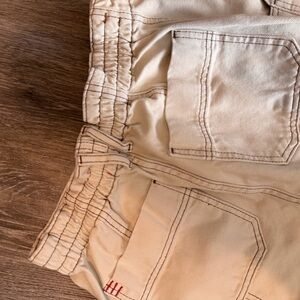 Stylish beige cargo pants with multiple pockets. Perfect for casual wear and stretchy waist band for a comfortable fit.