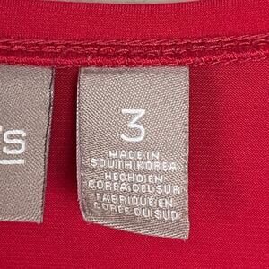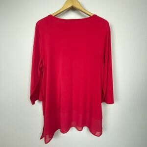 Chico’s Red Tunic Top Size XL (3) Jersey Knit 3/4 Sleeve Chiffon Hem Mixed Media