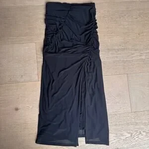 House Of Harlow x Revolve black ruched skirt with sexy side slit.