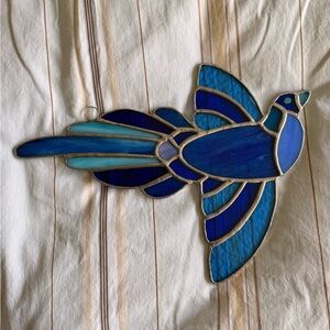 Beautiful handcrafted stained glass bluebird suncatcher, made with richly colored blue glass and traditional leaded construction.