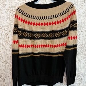 Vintage-style Talbots fair isle sweater in classic winter lodge colors. Soft wool blend with cozy feel and relaxed fit. Perfect for fall/winter layering, cabin trips, or holiday outfits.