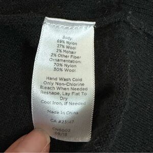 • Wool blend with mohair (please note the mohair may look like pet fur to some. This has been hand washed in scent free detergent and hung to dry. Ships from a pet and smoke free home)