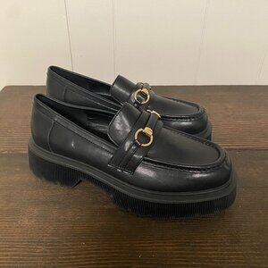 NWOT Princess Polly Saxon Loafters. Black with Gold Snaffle. Size 7.