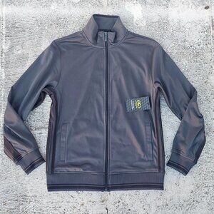 Athletic Works Men Track Jacket Charcoal Black Zip Up Tricot Size S 34-36 NWT