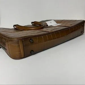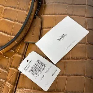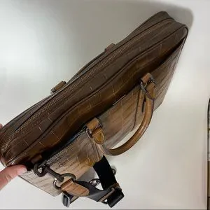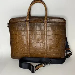 Elegant croc-embossed design. Durable leather material. Comfortable handles and adjustable strap.