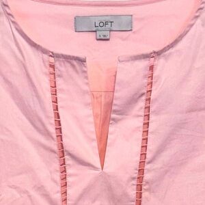 LOFT Size Small Soft Pink 3/4 Sleeve Cotton-Spandex Inset Ladder Lace Top